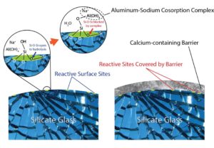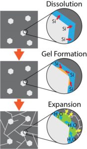 Research funded by the Consortium for Optimization of the use of Mineral AdmiXtures (COMAX) is focused on the mitigation of alkali-silica reaction (ASR). ASR is a multi-step process wherein reactive silicate aggregates in a concrete dissolve, form gels, and induce expansion and cracking. In the interest of preventing this detrimental reaction, COMAX researchers employ comprehensive characterization both of silicate solids and the alkaline solutions they come into contact with. Results provide a means of rapidly and accurately assessing ASR-susceptibility of reactive aggregates, and tailoring appropriate mitigation strategies by the addition of mineral and chemical admixtures. Outcomes of this work will facilitate the use of lower quality aggregates, the beneficial re-purposing of industrial waste byproducts such as fly ash, and ultimately the improvement in durability and service life of the resulting concrete infrastructure made with such materials.